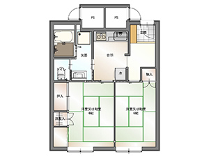 | 間取り | 1K(6帖) 2DK(6帖+6帖) |